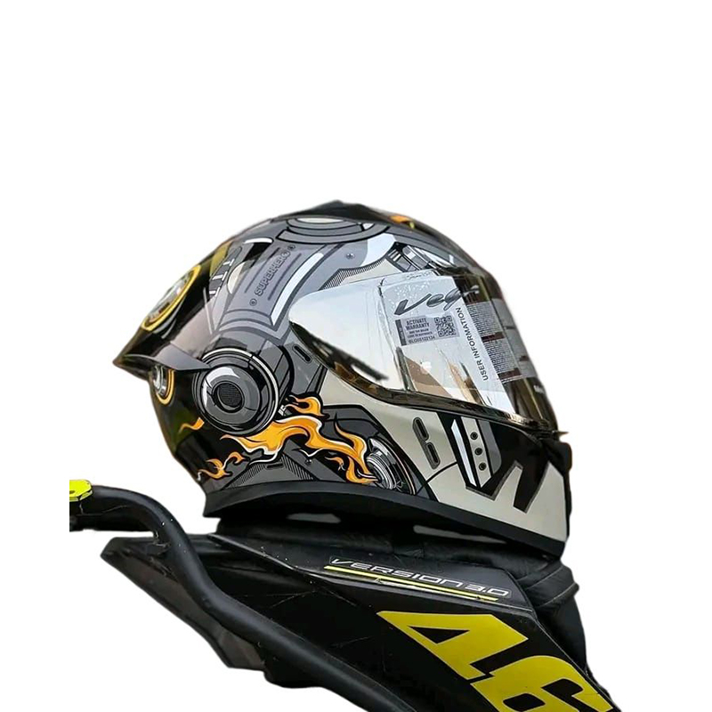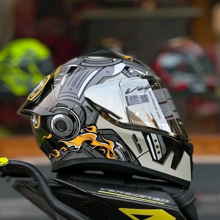 Product details of Vega Bolt superhero Glossy Black grey full face helmet with dual certification.