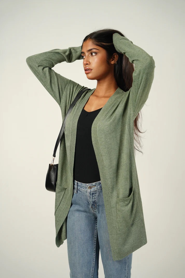 Our Seaweed Long Cardigan is a versatile layering piece that effortlessly combines style and modest fashion. The