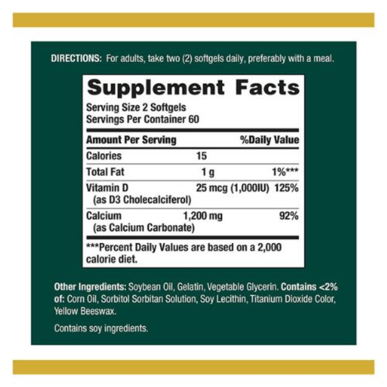 Nature’s Bounty Calcium 1200mg + Vitamin D3 – Rapid Release Softgels (120 Count)