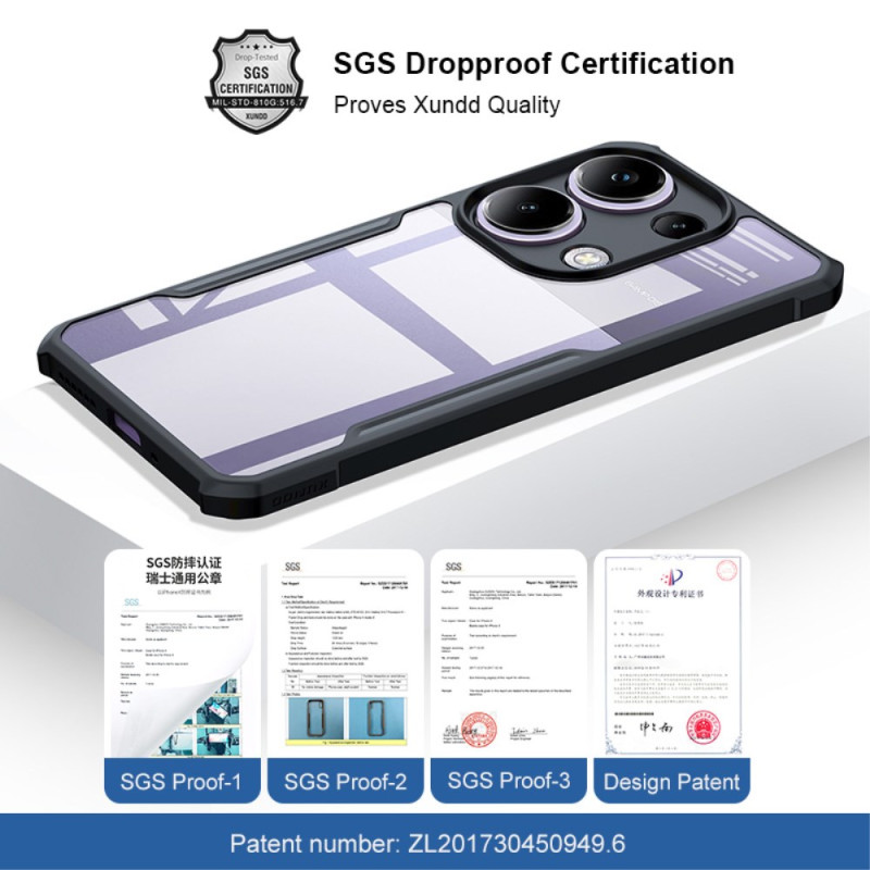 Brand Cover " Xundd " For Redmi Note 13 Pro 4G / Poco M6 Pro 4G Case Airbag Anti-drop Camera Protection Acrylic & TPU Back Transparent Cover - Black