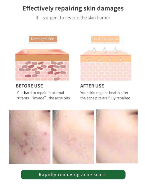 এটি ব্যবহারে ধীরে ধীরে ব্রনের গর্ত মিনিমাইজ হয়ে আসবে।ব্রনের লালচে,কালচে দাগ দূর হয়ে যাবে। ব্রনের গর্ত দূর করবে। ব্রনের কারনে স্কিন ড্যামেজ হয়ে থাকলে তা রিপেয়ার করবে। ত্বকের ব্যাকটেরিয়া দূর করবে। পুরাতন এবং নতুন দাগ কমিয়ে ক্লিয়ার একটা ত্বক পাবেন।