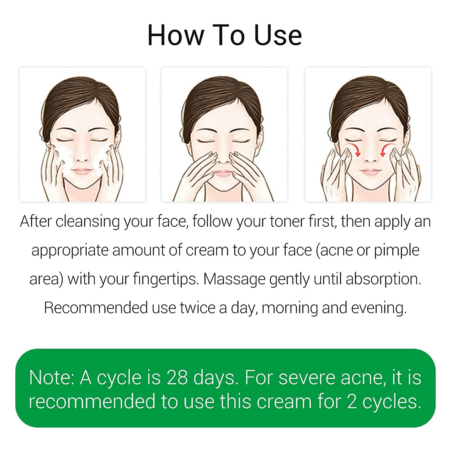 - Fórmula mejorada y textura ligera: con fórmula suave actualizada, es refrescante y no grasosa, que se puede absorber rápidamente. Continúe usando 3-4 semanas, tratará eficazmente el acné y las espinillas, y reparará la piel dañada causada por el acné. Para el acné severo, se recomienda usar esta crema durante 2 ciclos.