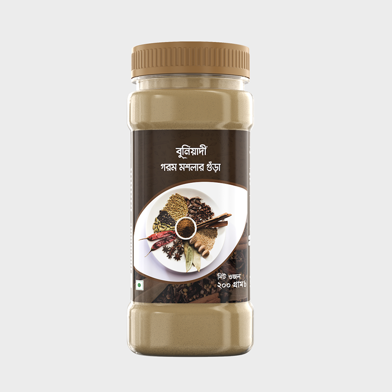 - Buniyadi Garam Masala 200gm is a premium blended spice mix made from carefully selected whole spices to bring rich aroma and authentic taste to your everyday cooking. This traditional garam masala is prepared using a balanced combination of spices such as cumin, coriander, black pepper, cinnamon, cloves, and cardamom, which are cleaned, dried, and ground under hygienic conditions to preserve natural flavor and freshness.