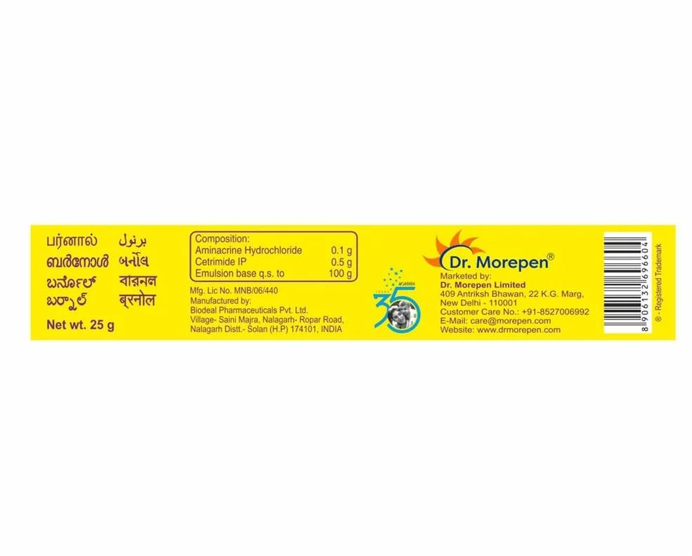 Trusted by households across India, this compact 15 gm tube is ideal for burn treatment, minor skin injuries, and quick healing support. Whether it's a kitchen mishap, minor scald, or a surface wound, Burnol is a must-have in every first-aid kit.