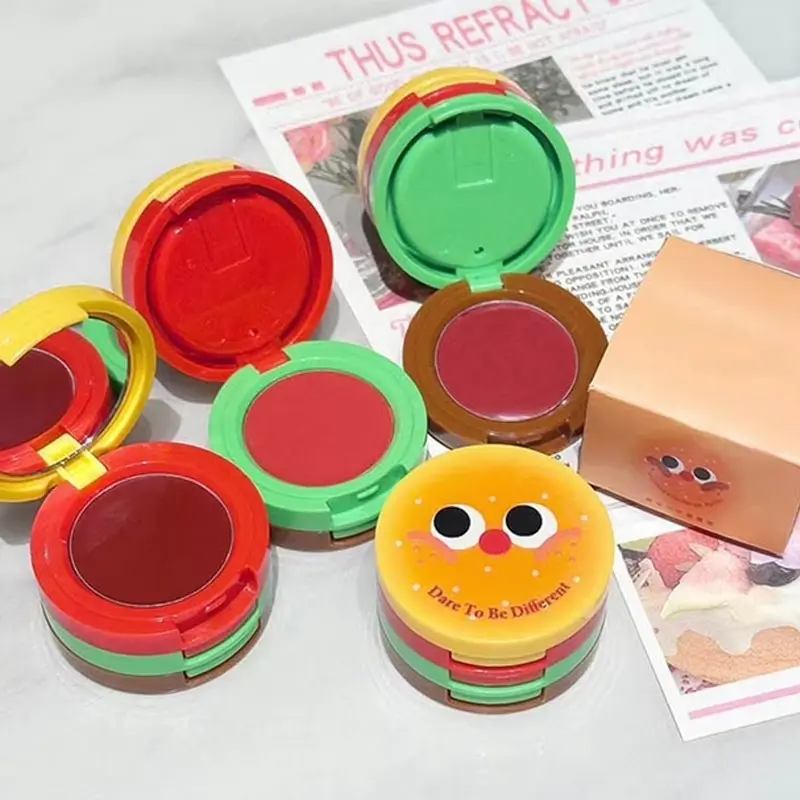 Butter Hamburger Lip Mud 3 in 1 Waterproof Velvet Red Brown Mousse Lipstick Set Cute Combo Tint Non-stick Cup Lips Makeup