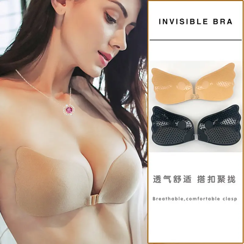 A butterfly-shaped invisible silicone bra is a strapless, backless adhesive bra designed in a wide, winged structure that resembles butterfly wings. The extended side wings provide: