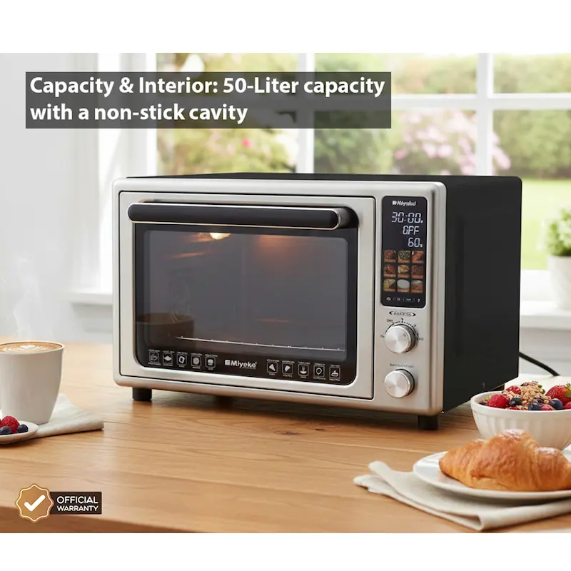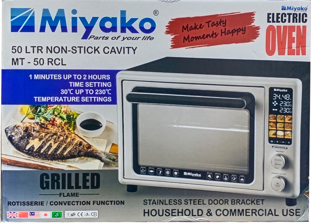 The Miyako MT‑50RCL 50‑Liter Electric Oven is a powerful and versatile kitchen appliance designed for both home and commercial cooking. With its large 50-liter capacity, this oven is perfect for baking cakes, pizzas, grilling chicken, roasting meat, and preparing a variety of delicious dishes.