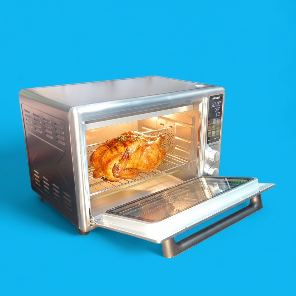 For enhanced cooking performance, the oven includes rotisserie and convection functions, ensuring evenly cooked and perfectly roasted food. This makes it an excellent choice for homes, bakeries, small restaurants, and catering services.