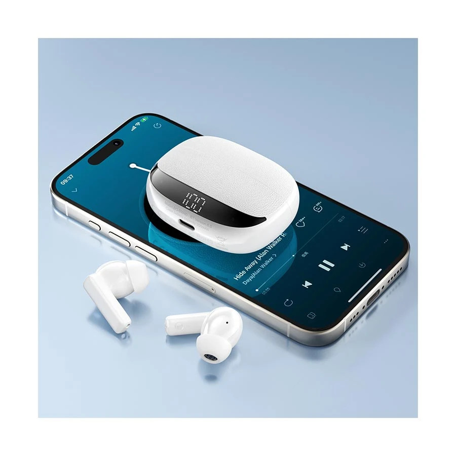Brand - Bwoo, Model - Bwoo BO-BW40, Type - Earbuds, Connectivity - Wireless, Sensitivity - -85 dBm, Microphone - Yes, Number of Mics - 2, Working/Bluetooth Range - 10 Meter, Bluetooth Version - Bluetooth 6.0, Noise Cancellation - Yes, Noise Cancellation Type - ANC & ENC, Sound Mode - Stereo, Waterproof - No, Dustproof - No, Shockproof - No, Driver Unit - 13mm, Battery - 30mAh (Earbuds), 300mAh (Charging Case), Rechargeable Battery - Yes, Playing Time - Up to 6 Hours, Charging Plug Type - USB Type-C, Plug Type - No, Color - White, Feature - ANC + ENC noise cancellation, Stable wireless connection with BT V6.0, High-performance precision diaphragm speakers, Half-in-Ear Comfort, Lightweight design, Elegant look leather-textured charging case., Others - hip model: JL7003D8BT, BT protocols: HFP, HSP, A2DP, AVRCP.SPP PBAP TWS+., Warranty - 1 Year (Warranty must be claimed with original box & all accessories)