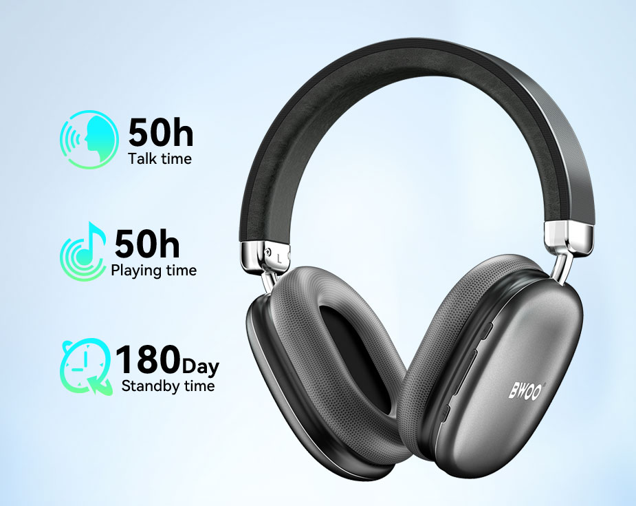 BWOO noise cancelling headset features soft, cushioned ear pads that fully envelop your ears, providing not only comfort but also enhanced noise reduction to isolate 90% noise, allowing you to focus entirely on your music, calls, or videos even when you are on an airport, a noisy street or a busy office. Engineered to provide a customizable fit, these noise-cancelling wireless headphone comes with an adjustable headband and swiveling ear cups so that you can enjoy all-day-long music with zero-pressure wear, making it ideal for long listening sessions without causing discomfort.