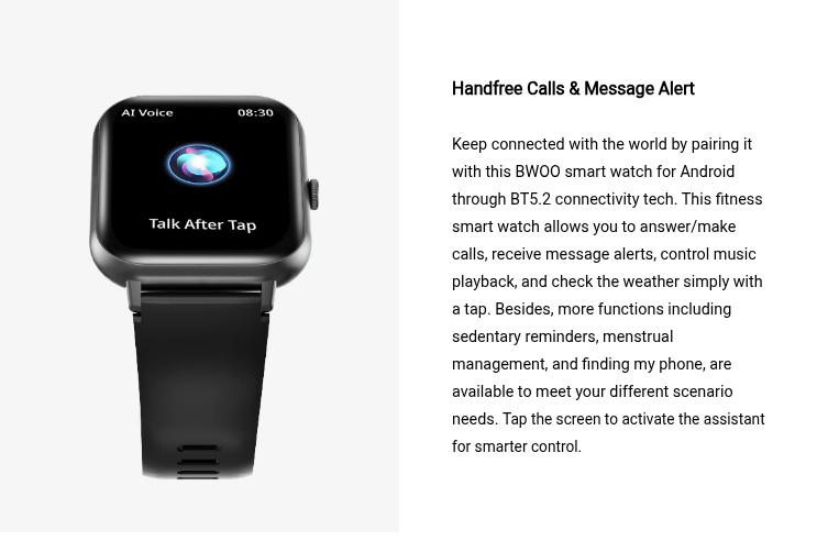 BWOO 1.83 inch waterproof smart watch features a 1.83 inch TFT touch screen with a high resolution of 240x284, making it beautiful and easy to read. Combining with a stylish appearance and 100+ stylish watch faces, it is also a trendy item for you to accessorize your style.