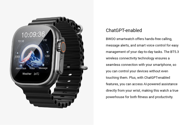 BWOO 2.01 inch HD screen smart watch combines a stunning ultra-large IPS display with a sleek zinc alloy structure, offering both elegance and durability. Its high-definition touch control screen ensures clear and vibrant visuals, making it not just a functional device but also a stylish accessory. This smartwatch large screen is designed to withstand everyday wear and tear while keeping up with your active lifestyle. Whether you're working out or going out, this smartwatch with heart rate monitoring fits perfectly into your day.