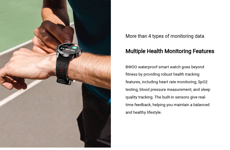 Packed with multiple fitness tracking modes, this BWOO fitness watch for iOS and Android is the ultimate companion for your workouts. Whether you're into running, swimming, or yoga, it monitors your steps, calories burned, and performance with precision. Its built-in pedometer and other intelligent sensors ensure accurate data for every fitness enthusiast.