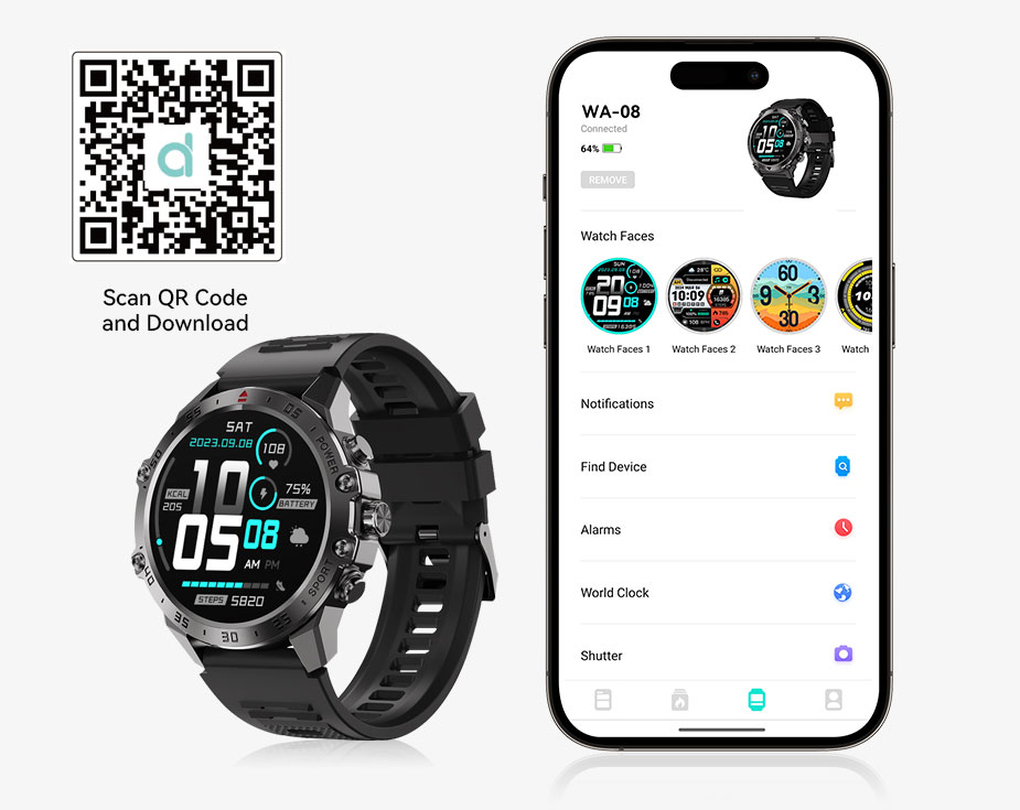With a 370mAh battery, BWOO IP67 waterproof smart watch offers 5 to 7 days of working time on a single charge, ensuring it's always ready when you need it. The IP67 rating makes it resistant to water and dust, perfect for active lifestyles.