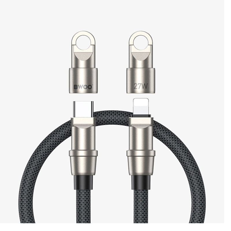 BWOO, one of the most excellent data cable supplier make this 27W phone lanyard charging cable a combination of convenience and practicality. It can be converted into a phone wrist lanyard, enabling you to wear your phone around your wrist so that you will not misplace or lose your phone while on a hike, at a concert, or simply out and about. With this creative design, this BWOO rechargeable phone lanyard 2 in 1 data cable is perfect for easy access to charging while on the go, ensuring you're always prepared for low-battery situations.
