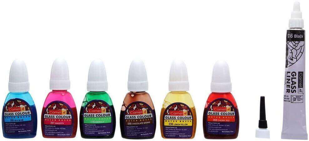 Camlin glass colors contains 6 bottles each of 10 ml & 1 glass liner tube of 15 ml