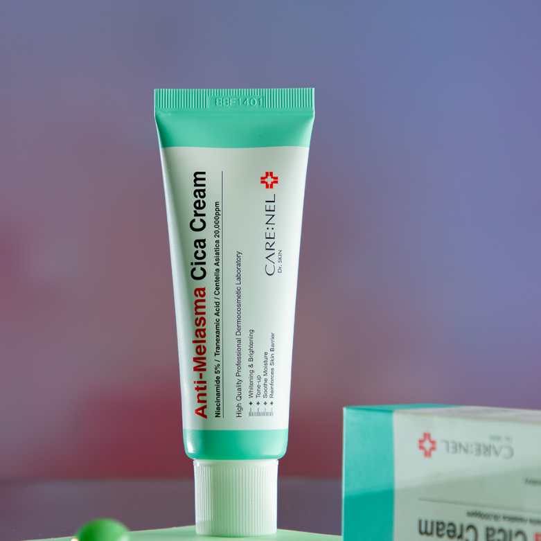 Care:Nel Anti-Melasma Cica Cream (40ml) is a targeted brightening and soothing treatment designed to reduce the appearance of melasma, dark spots, and uneven skin tone. Enriched with Centella Asiatica (Cica) extract, it calms irritation and strengthens the skin barrier, making it ideal for sensitive and hyperpigmentation-prone skin.