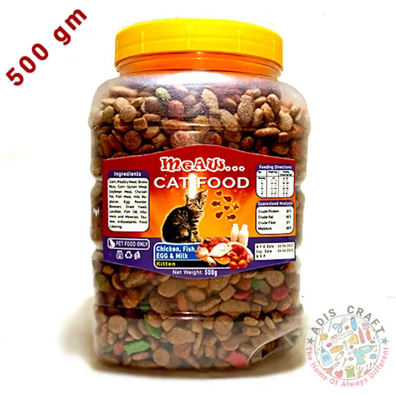 - বেশিরভাগ শুষ্ক বিড়ালছানার খাবারে ছোট আকারের যা বিড়ালছানাদের চিবানো এবং গিলতে সহজ।