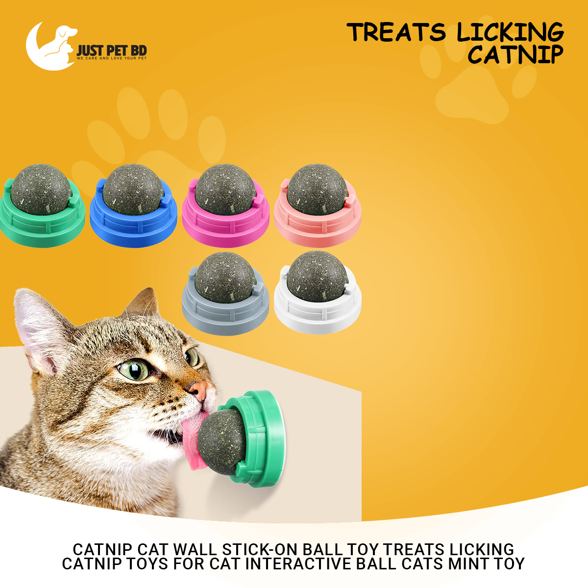 - Practical Design: the cat toy can easily stick to the wall or other surfaces with strong viscous force, no falling off when your kitten licks and plays. The 4 balls are 360° rotatable when being licked