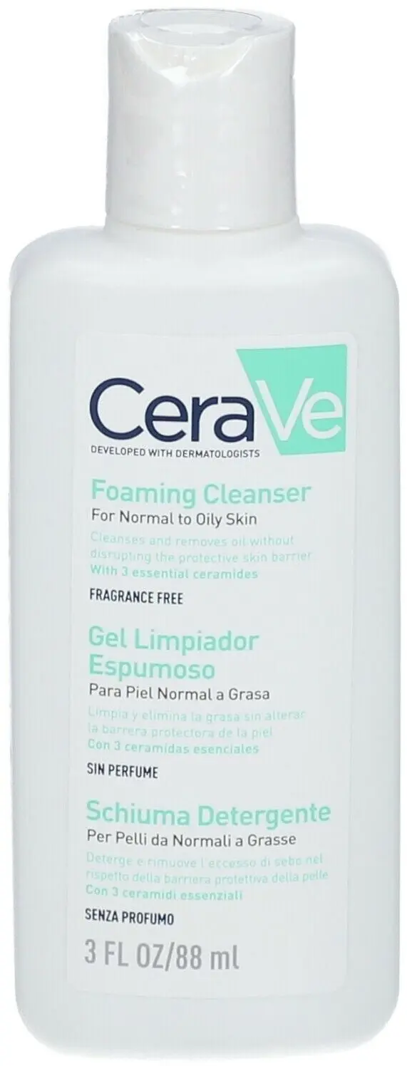 CeraVe Foaming Cleanser is a gentle yet effective face wash designed for normal to oily skin. Developed with dermatologists, this fragrance-free cleanser removes dirt, excess oil, and impurities without disrupting the skin’s natural protective barrier. Enriched with 3 essential ceramides, it helps to restore and maintain the skin’s barrier while delivering a refreshing cleanse.