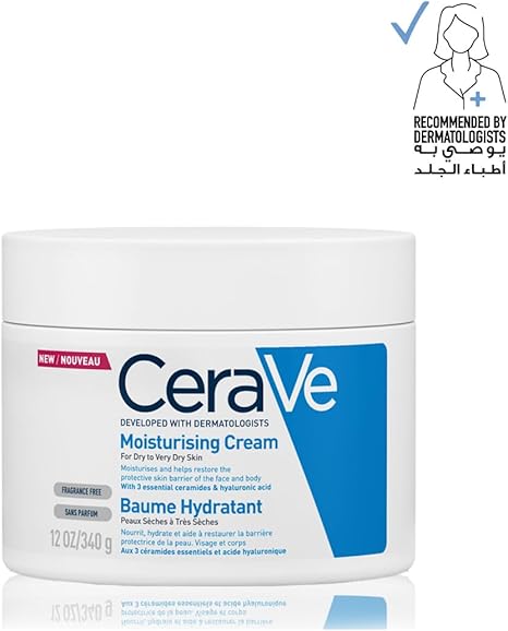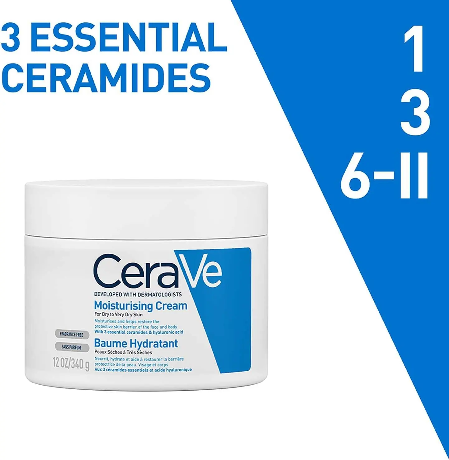CeraVe Moisturising Cream 340gm body cream. All day hydration for dry skin. Specifically formulated to moisturise sensitive skin that is dry. Also suitable to use on eczema-prone skin. Moisturises the protective skin barrier of the face and body.