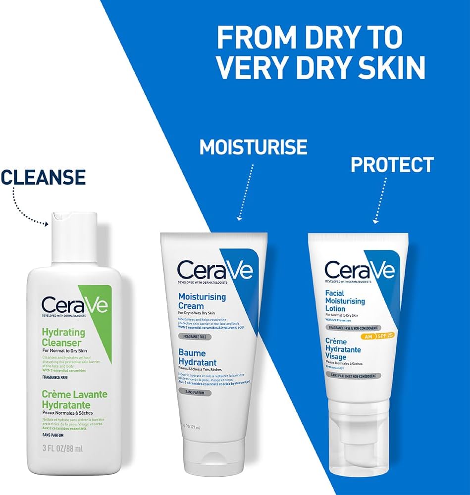 CeraVe Moisturising Cream For Dry To Very Dry Skin is a rich, non-greasy, and fast-absorbing moisturizer developed with dermatologists to provide long-lasting hydration and restore the skin's natural barrier.