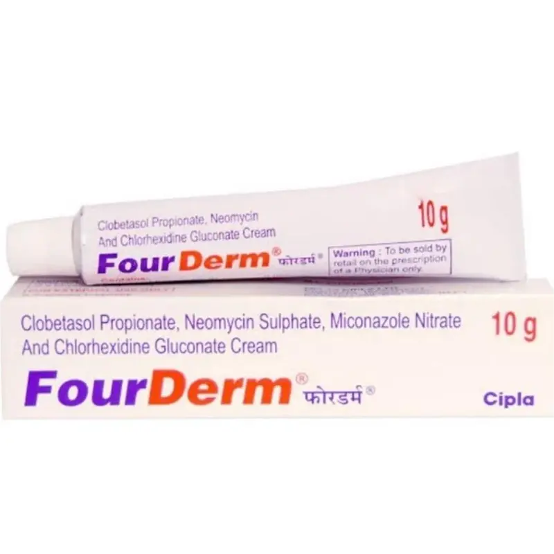 Fourderm cream is a topical medication used to treat skin infections caused by bacteria, fungi, or both. It combines several active ingredients: clobetasol (a steroid with anti-inflammatory properties), neomycin and chlorhexidine (antibacterial agents), and miconazole (an antifungal agent). This combination helps reduce symptoms like redness, swelling, and itching.