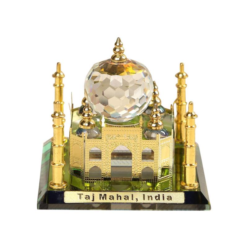 • Taj Mahal '' in India is one amongst The Seven Wonders of The World. It is an Amazing Crystal made Show piece with Mirror effects.Very Unique for decoration purpose. Made of metal with crystal base.