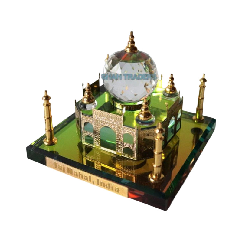 • Taj Mahal '' in India is one amongst The Seven Wonders of The World. It is an Amazing Crystal made Show piece with Mirror effects.Very Unique for decoration purpose. Made of metal with crystal base.
