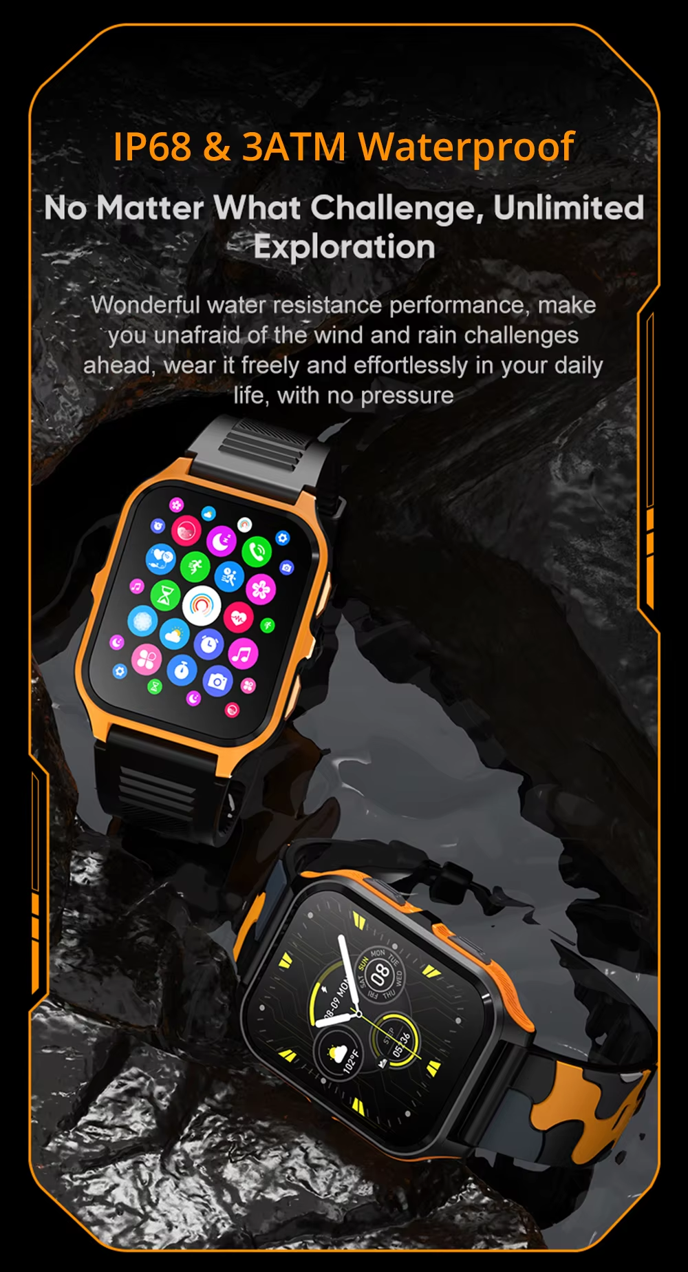 - Waterproof level: IP68 & 3ATM Waterproof