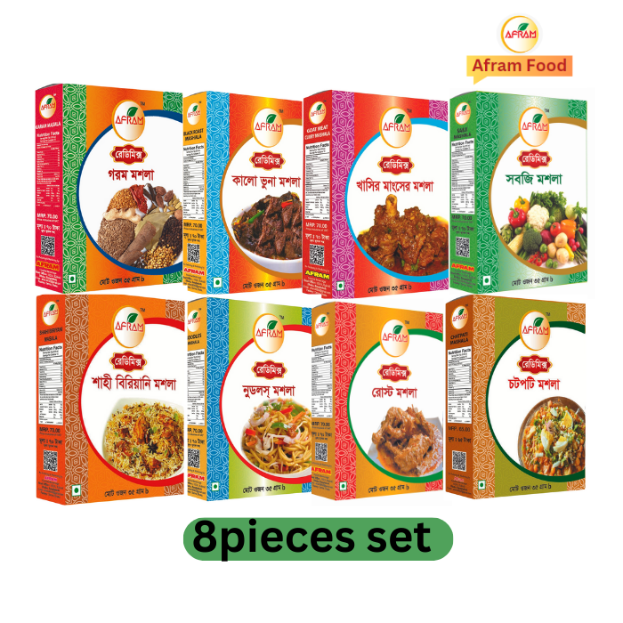 Product details of Combo set of Afram Shahi Biriyani, vegetable/sabji, Garam, kalo buna, Chatpati, roast, noodles, Mutton Masala - 35gm per pic(8 pieces)