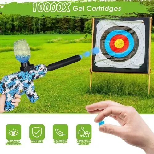 Introducing the Electric Gel Ball Blaster Toy Kit With Goggles Water Gun in Multicolor - an exhilarating, action-packed toy that promises endless hours of fun and excitement for kids and adults alike. Product Features: Electric Gel Ball Blaster: This blaster is a high-performance, electric-powered toy gun that shoots soft and eco-friendly gel balls. It offers rapid firing capabilities, allowing you to unleash a barrage of gel balls at your targets with ease. Safe and Eco-Friendly Ammo: The gel balls, also known as water beads or gel pellets, are made from non-toxic, biodegradable materials. They are designed to be soft on impact, ensuring safety during play. These balls expand upon soaking in water and disintegrate over time. Multicolor Design: The blaster is available in a vibrant multicolor design that adds an extra level of excitement and style to your gameplay. The attractive colors make it visually appealing to both kids and adults. Included Goggles: Safety is a top priority, and this kit comes with a pair of protective goggles to shield your eyes during intense gel ball battles. The goggles offer a comfortable fit and clear vision. Easy Operation: The blaster is user-friendly, with a simple trigger mechanism for shooting gel balls. It's lightweight and easy to handle, making it suitable for players of all ages. Rechargeable Battery: The blaster is equipped with a rechargeable battery, ensuring you can keep the action going without the hassle of constantly replacing batteries. Adjustable Shooting Modes: This toy gun features adjustable shooting modes, allowing you to switch between single-shot and rapid-fire modes, giving you flexibility in your battles.