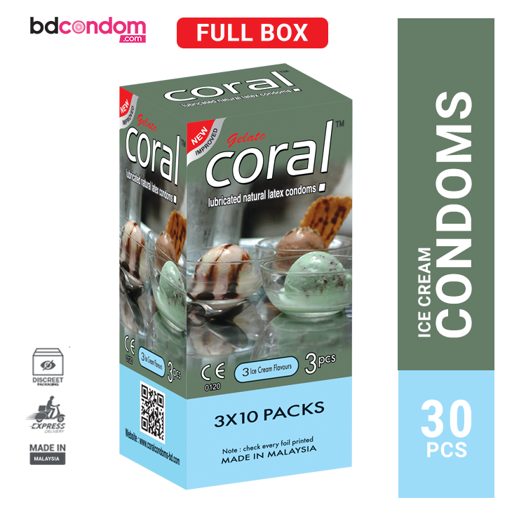 Coral 3 Ice Cream Flavored Condom 3x10 = 30Pcs Full Box