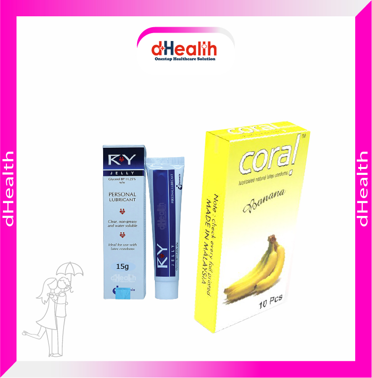 Coral Banana Flavored Lubricated Natural Latex Condoms Single Pack(1x10)=10Pcs & RY Jelly 10g Personal Lubricate Combo Pack