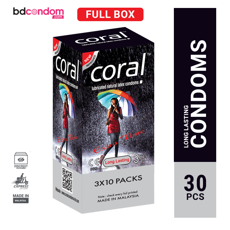 Coral Extra Time Long Lasting Black Lubricated Condom 3x10 = 30Pcs Full Box - Condom