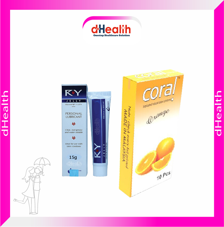 Coral Orange Flavored Lubricated Natural Latex Condoms Single Pack(1x10)=10Pcs & RY Jelly 10g Personal Lubricate Combo Pack