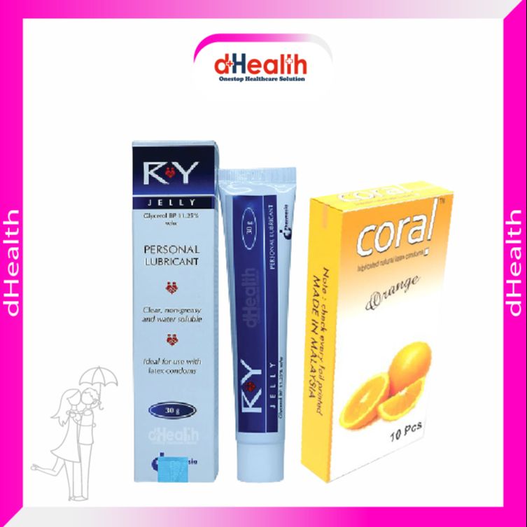 Coral Orange Flavored Lubricated Natural Latex Condoms Single Pack(1x10)=10Pcs & RY Jelly 30g Personal Lubricate Combo Pack