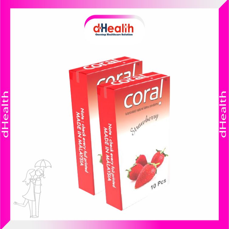 Coral Strawberry Flavored Lubricated Natural Latex Condoms (2x10)=20Pcs Combo Pack
