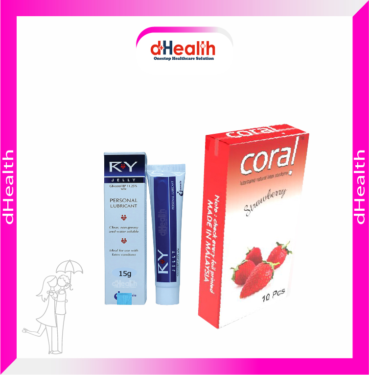 Coral Strawberry Flavored Lubricated Natural Latex Condoms Single Pack(1x10)=10Pcs & RY Jelly 10g Personal Lubricate Combo Pack