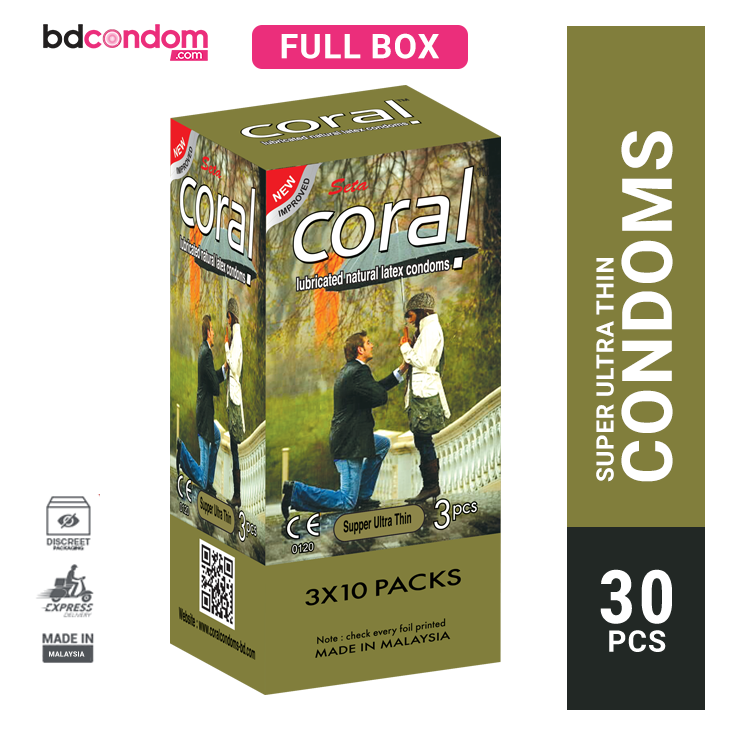 Coral Super Ultra Thin Lubricated Natural Latex Condom - Full Box - 3x10=30pcs