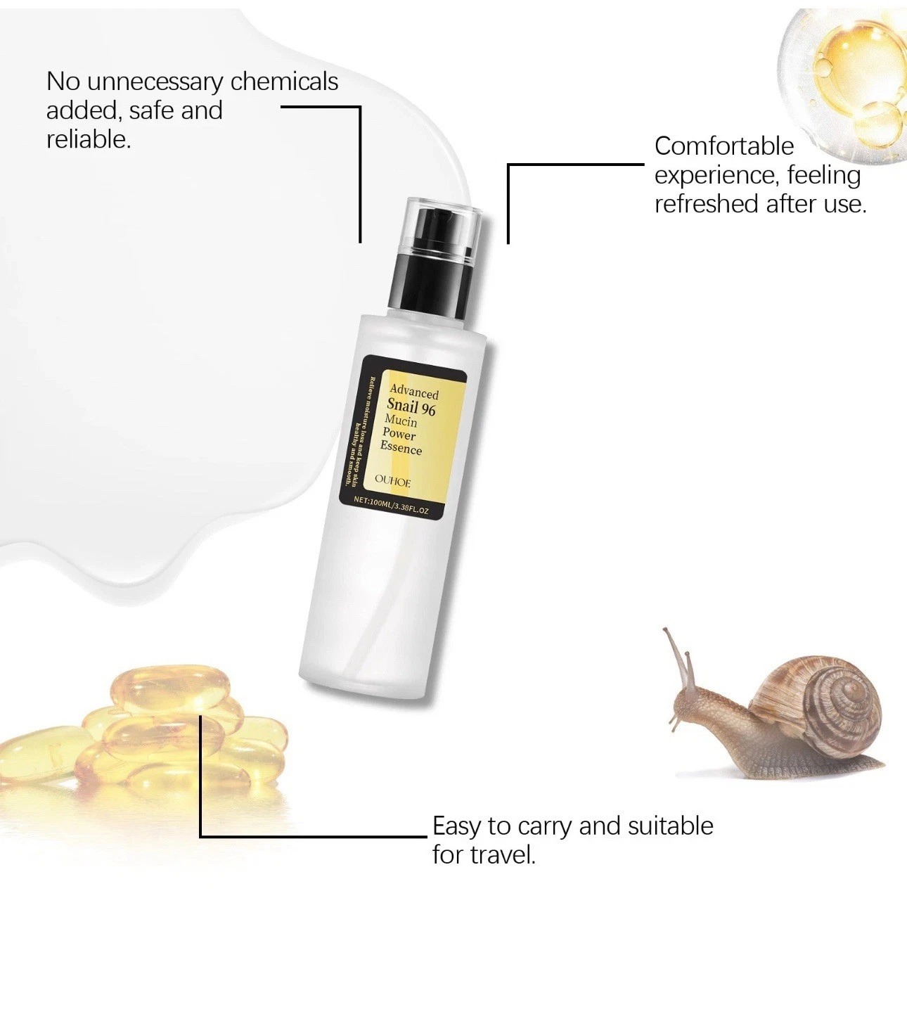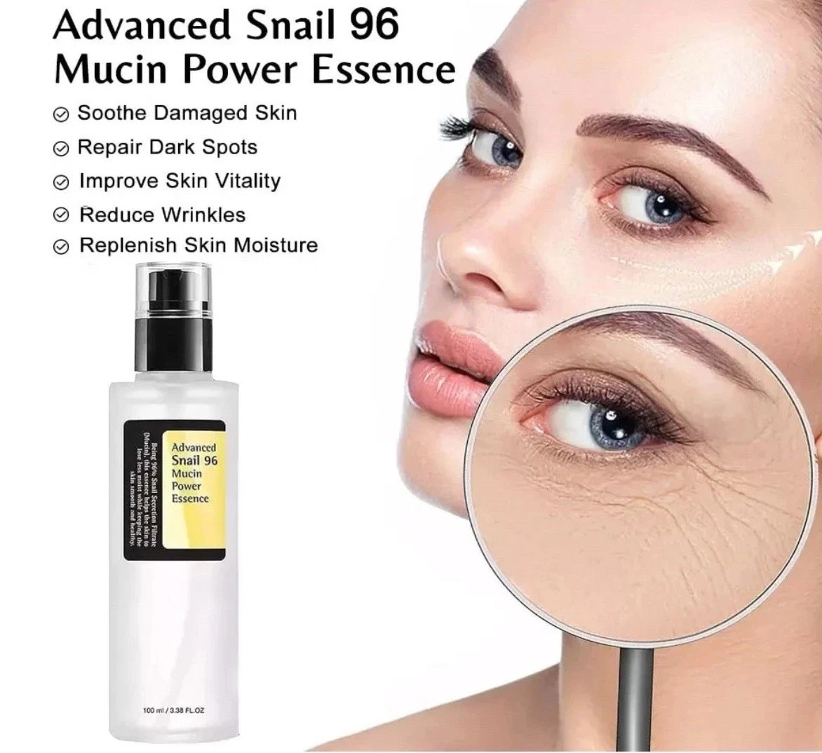 Contains 96% snail mucin to deeply nourish and repair the skin.