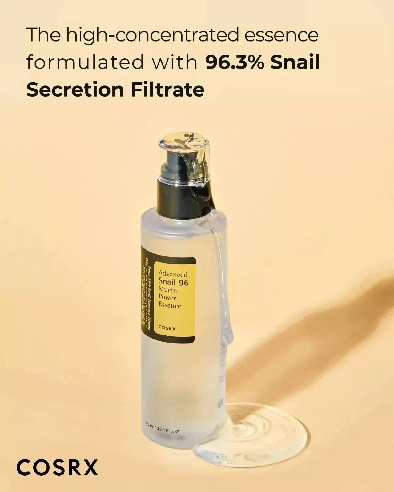 Experience the power of snail mucin with the COSRX Advanced Snail 96 Mucin Power Essence, a highly concentrated, lightweight essence designed to revitalize, hydrate, and restore your skin. Made in Korea, this skincare gem is your ultimate solution for achieving healthy, glowing skin.