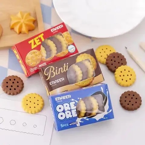 Creative 5 piece in box cookie shape student gift stationery eraser set