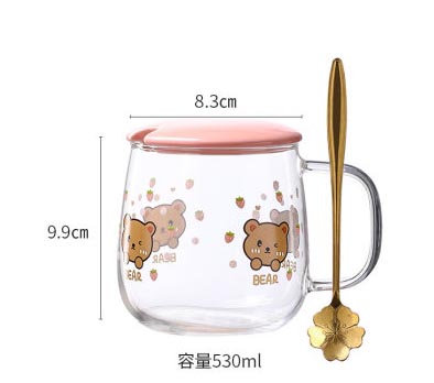 Japan Style Glass Mug Cute Pink Kawaii Drinkware Milk Coffee Cup Kitchen Office Delicate Spoon with Lid Cherry Blossom Mug