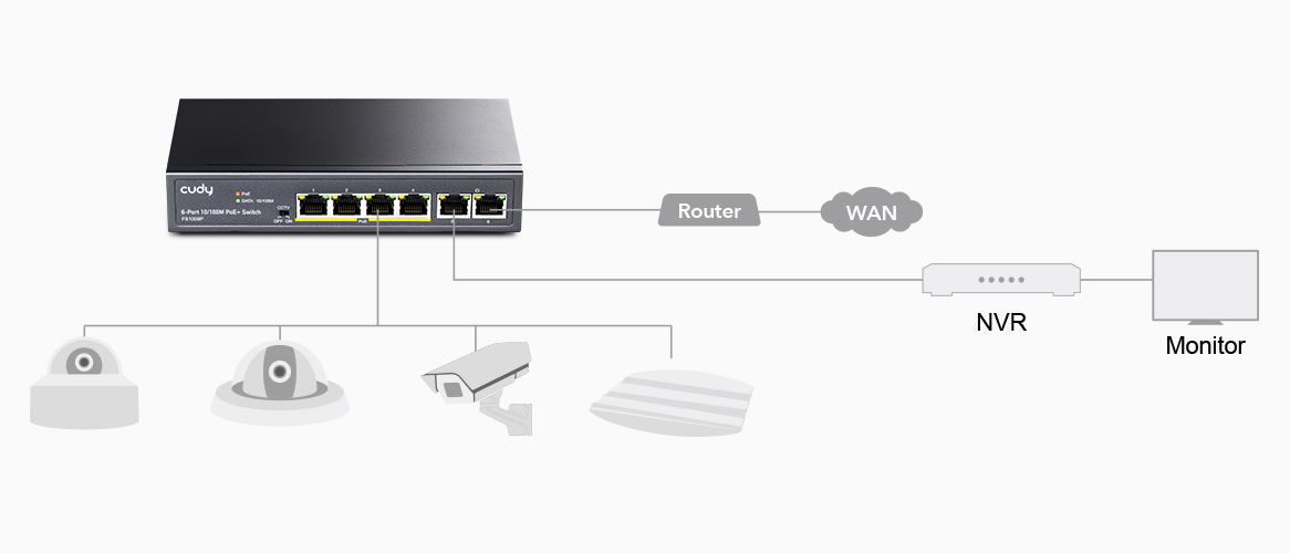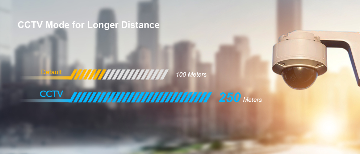 ● CCTV/VLAN mode switch, remote power and data up to 250m