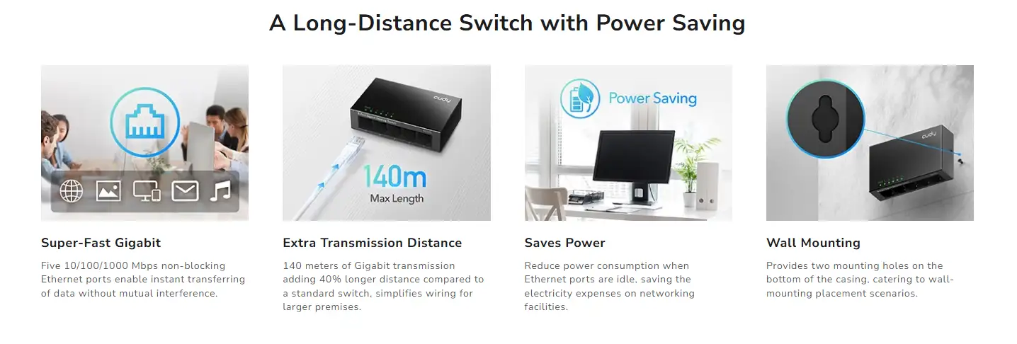 If you’re considering the Cudy GS105 4.0, here are the top features to keep in mind: