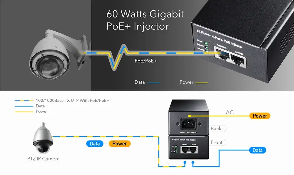 The Cudy POE300 1.0 60W Gigabit PoE++ Injector is a high-performance networking device designed to power compatible devices over Ethernet cables, eliminating the need for separate power adapters. Ideal for IP cameras, access points, and VoIP phones. This injector simplifies installation while ensuring reliable and efficient power delivery. Its compact design and Gigabit support make it a perfect choice for both home and professional network setups.