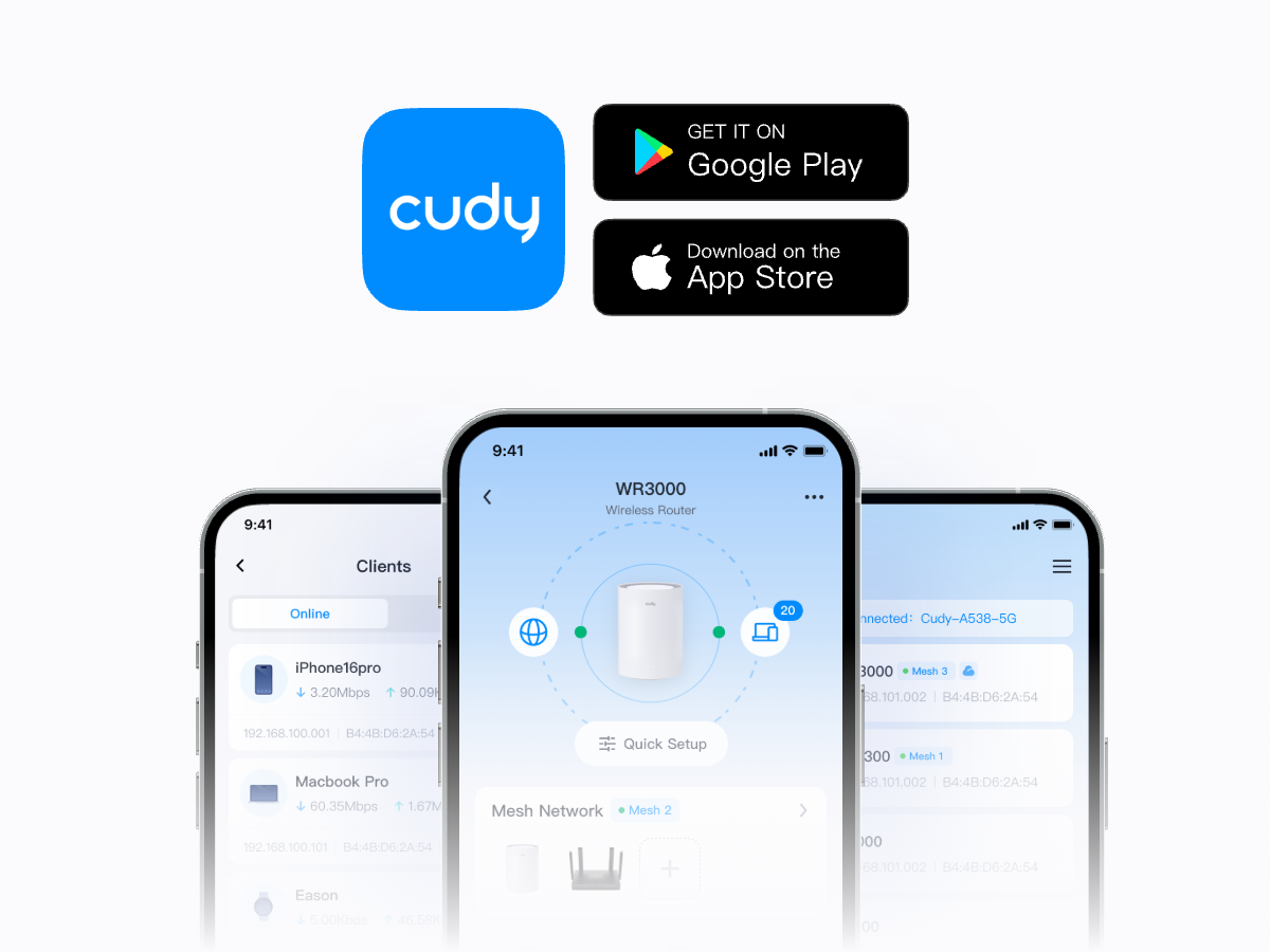 Manage your network from your phone. This model supports local control via the Cudy App.