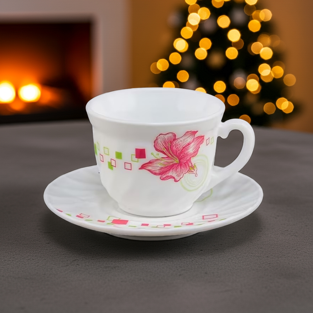 Opal Glass Cup & Saucer Set – X190/810 (Printed Design)