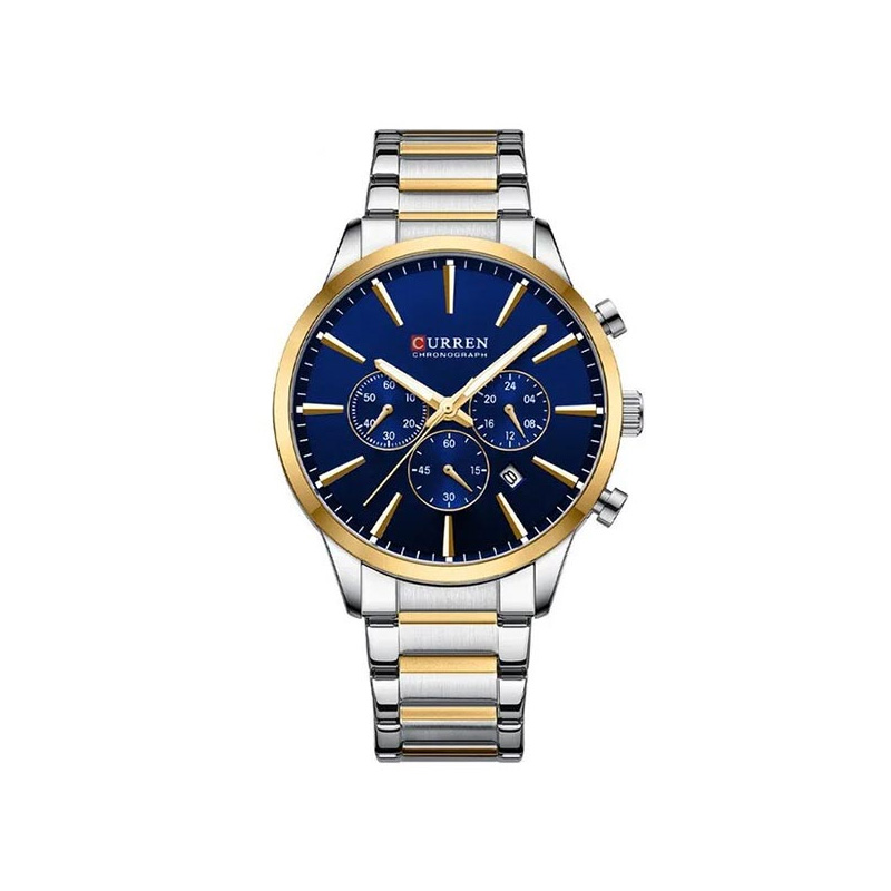 Curren 8435 Orginal Watch For Watch-Golden Silver and Blue
